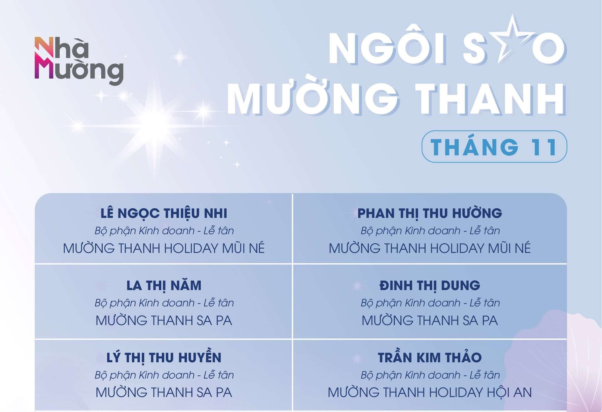 Ngôi sao Mường Thanh tháng 11/2025