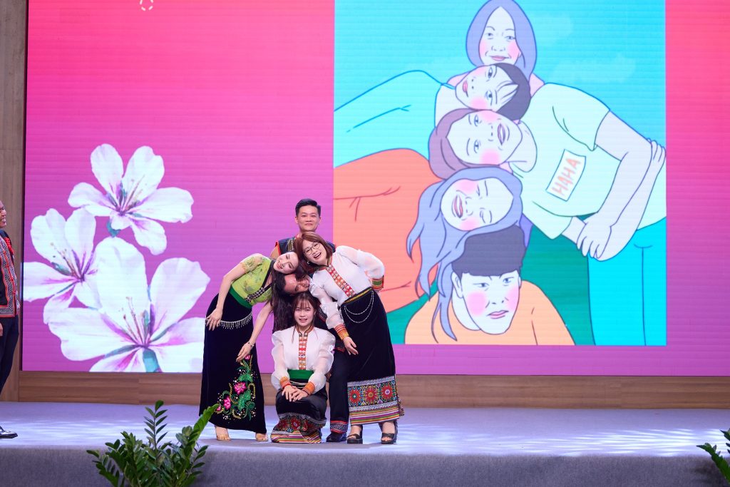 Chương trình tiếp nối với các tiết mục văn nghệ đặc sắc do chính cán bộ nhân viên thể hiện, mang lại không khí sôi nổi nhưng vẫn đậm tính kết nối nội bộ. Bên cạnh đó, các hoạt động giao lưu, minigame và trải nghiệm nhảy sạp – nét văn hóa tiêu biểu của vùng cao – đã tạo thêm nhiều điểm nhấn, góp phần tăng cường sự gắn kết giữa các thành viên.